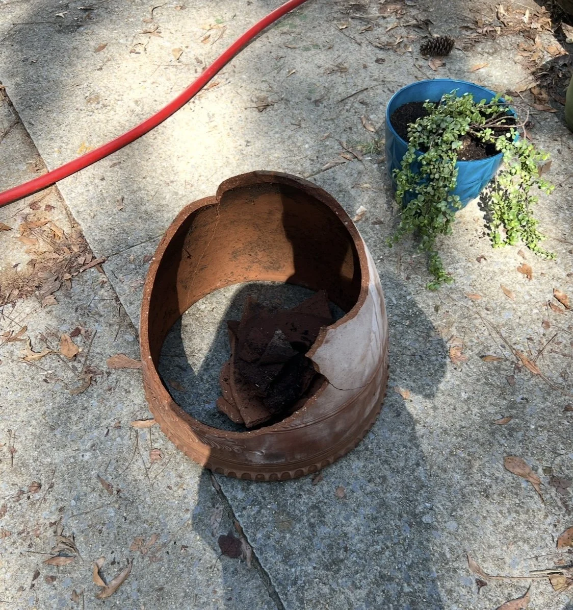 That gorgeous planter hit the ground and shattered into pieces that could never be put back together. I stood there for a moment. Called my aunt again…then I went back to Lowe’s, bought individual pots, and came home to start over.